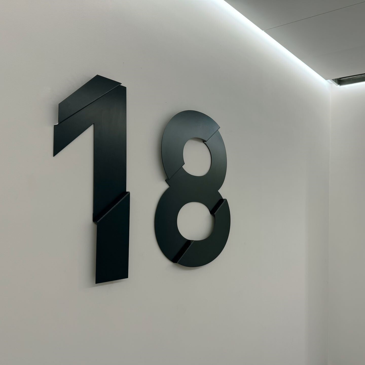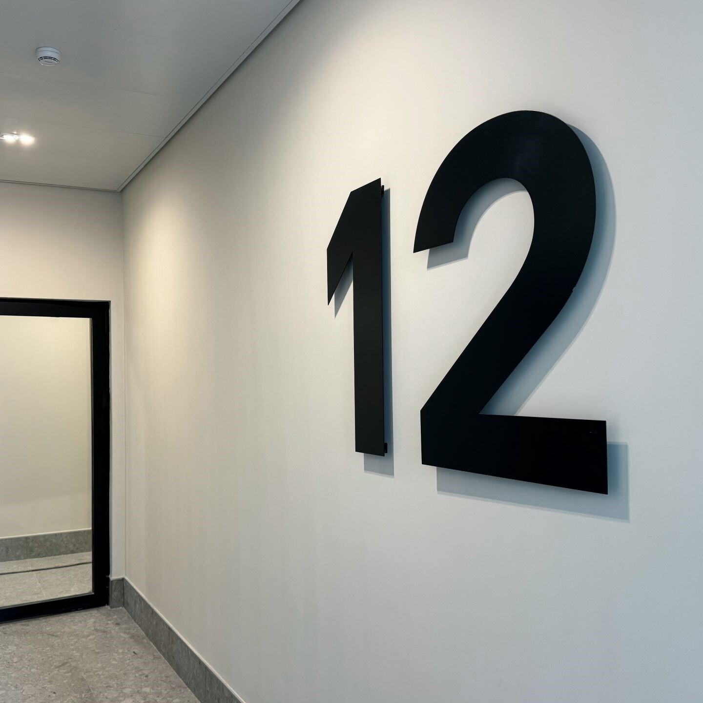 Изделия изготовлены из листовой стали толщиной от 3 до 6 мм, резка производилась на высокоточном лазерном оборудование. Для скрытого крепления номеров этажей к стене разработаны и изготовлены кронштейны из 1,5 мм стали.