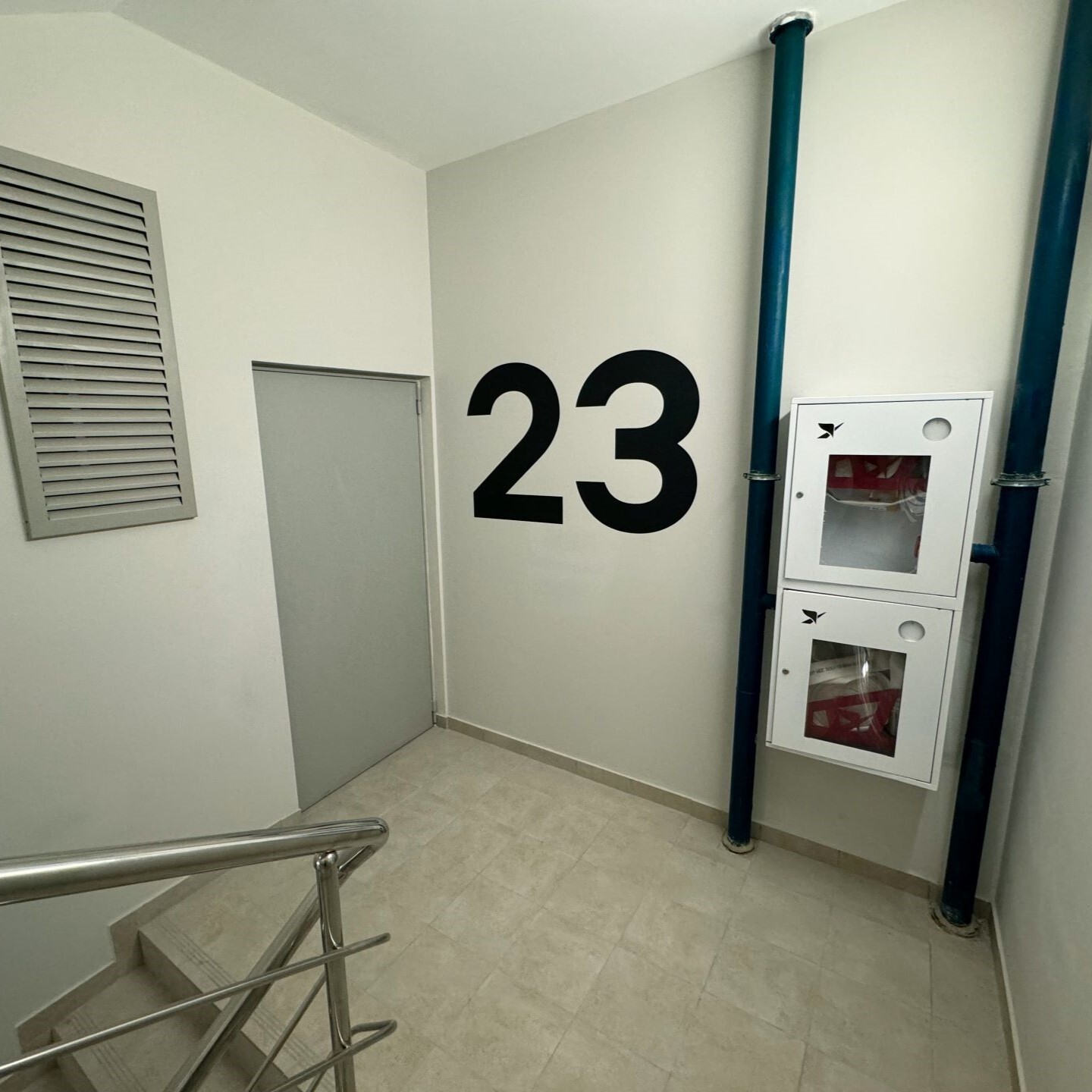 Также были произведены выкрасы номеров этажей на лестничных площадках.
