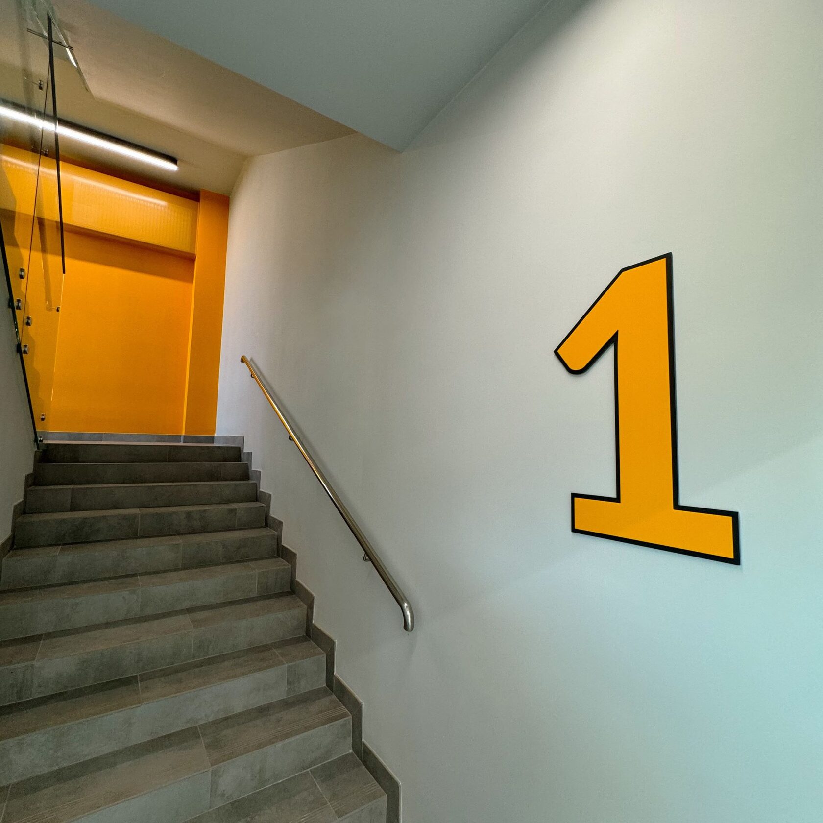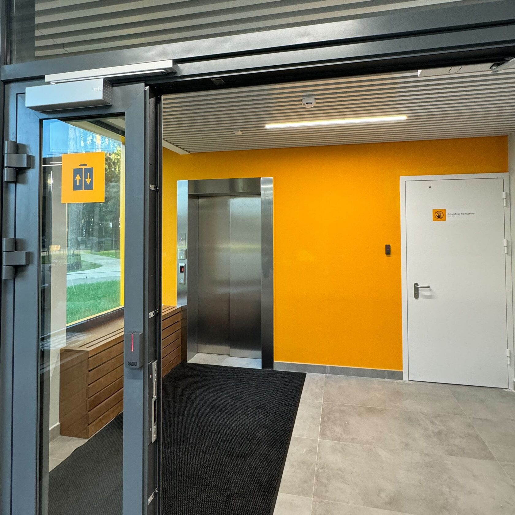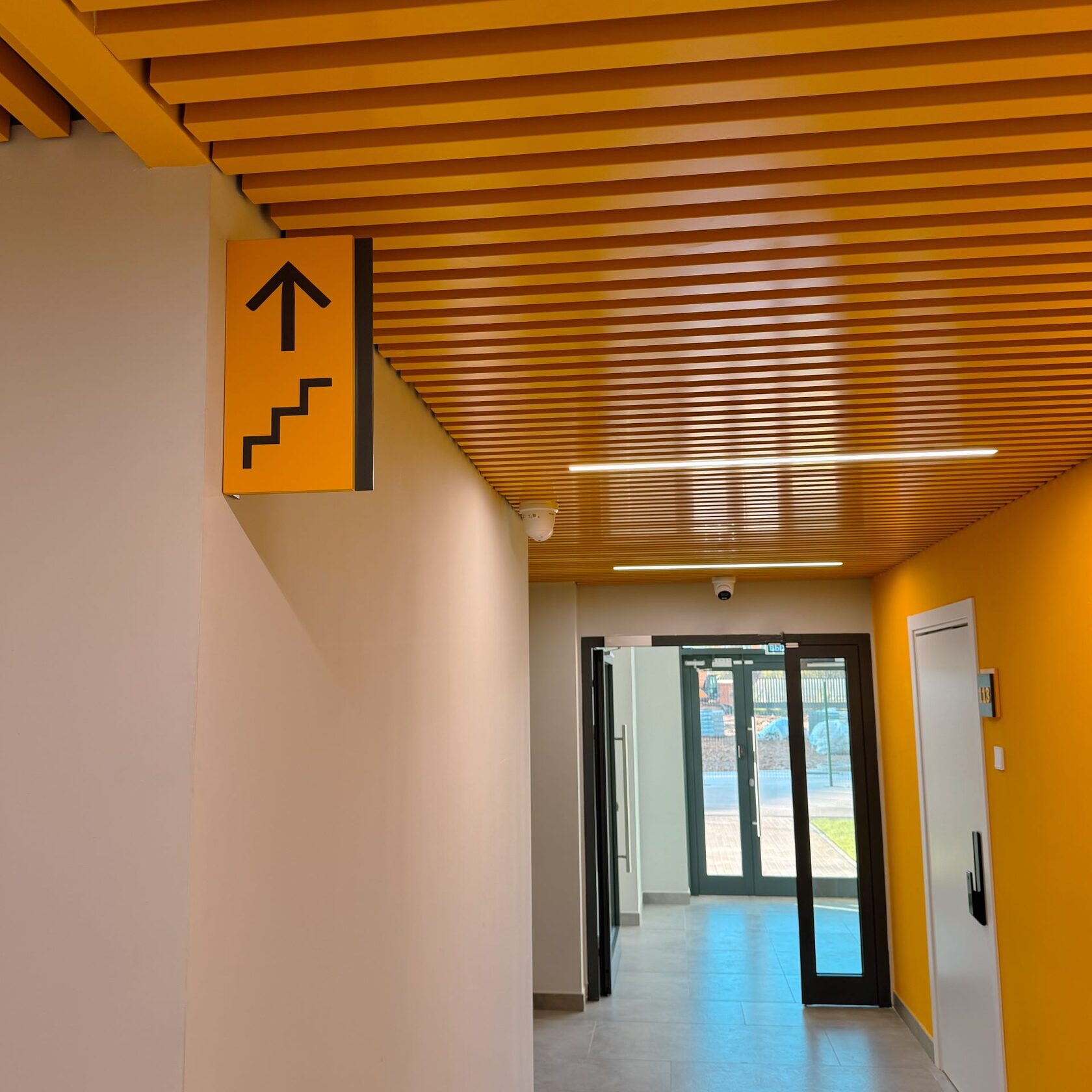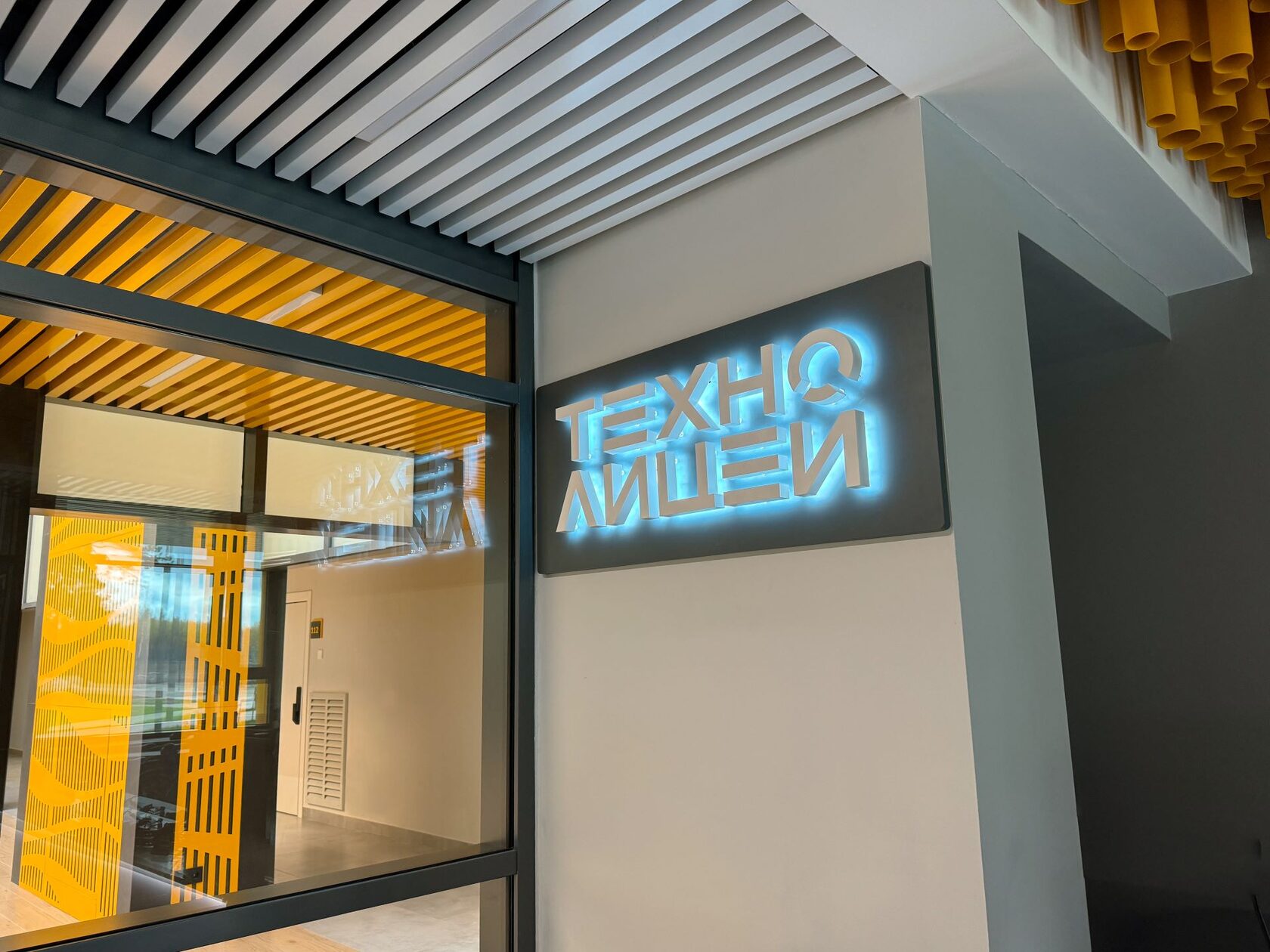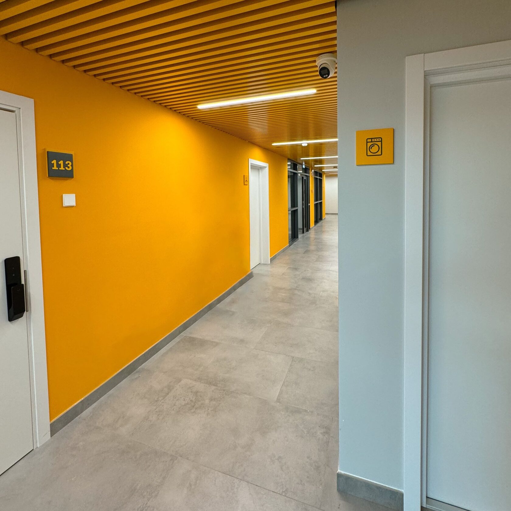 Кампус находится на территории Технолицея им. В.И. Долгих и был построен для проживания преподавателей. Корпус имеет цветовой акцент. Поэтому для навигации мы использовали цвета из интерьера - базовый серый и акцентный желтый под цвет стен.