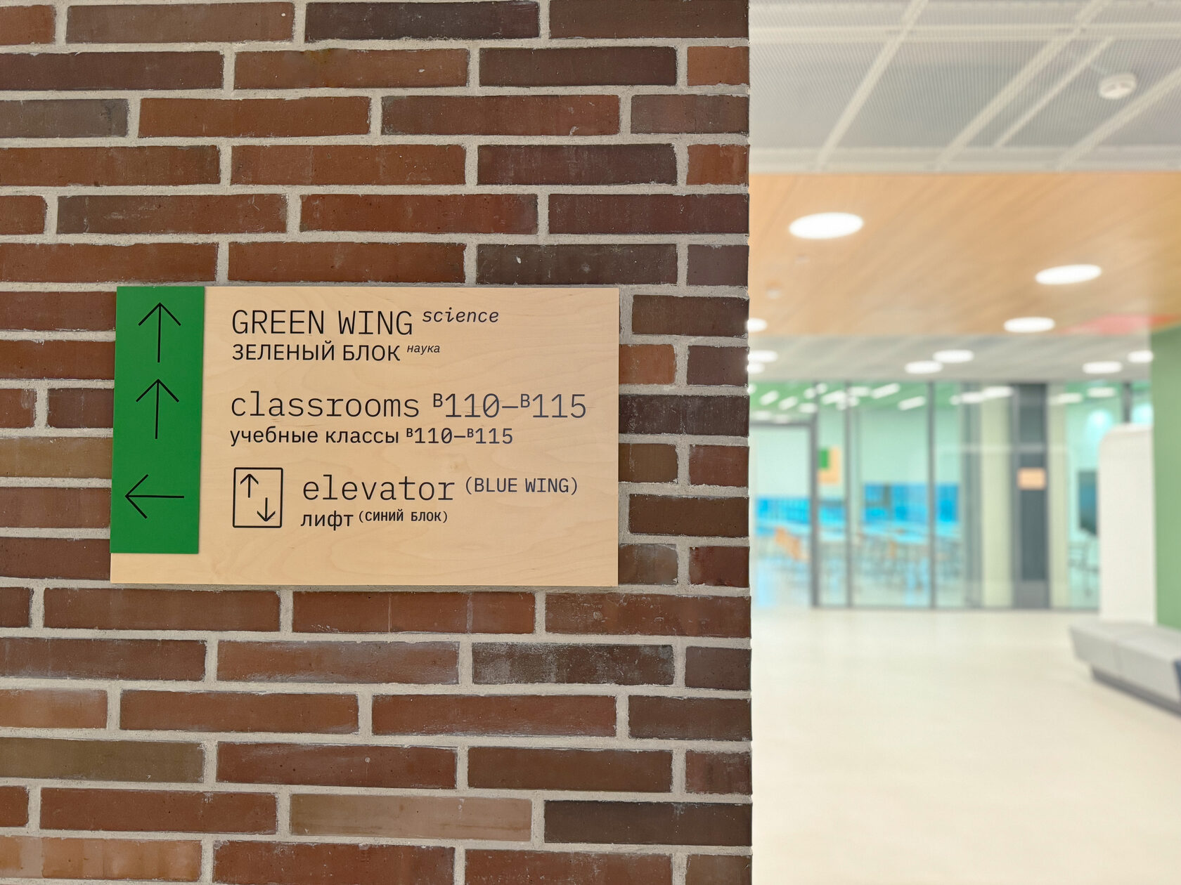 We were faced with a daunting task. We needed to unify the space of the new academic building, which is built on the principle of blocks with colour zoning, and the old building. In order to unify the system, we introduced colour zoning for the two buildings, assigned building indices to the classrooms and introduced numbering within each block.